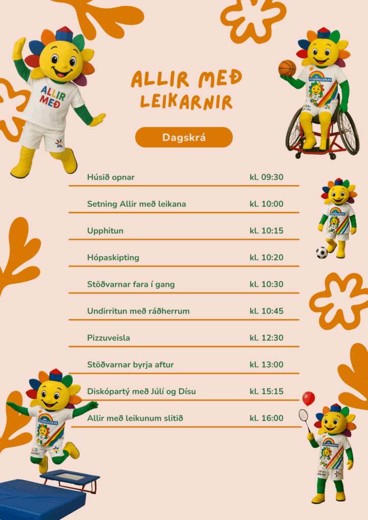 Dagskrá leikana er fjölbreytt þar sem þátttakendur fá tækifæri til að prófa nýjar íþróttir og má sjá hana hér að neðan: