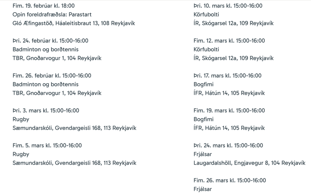 Heim 1. tbl. 2026 Gló Æfingastöð, ÍBR og ÍFR standa að Parastart íþróttanámskeiði