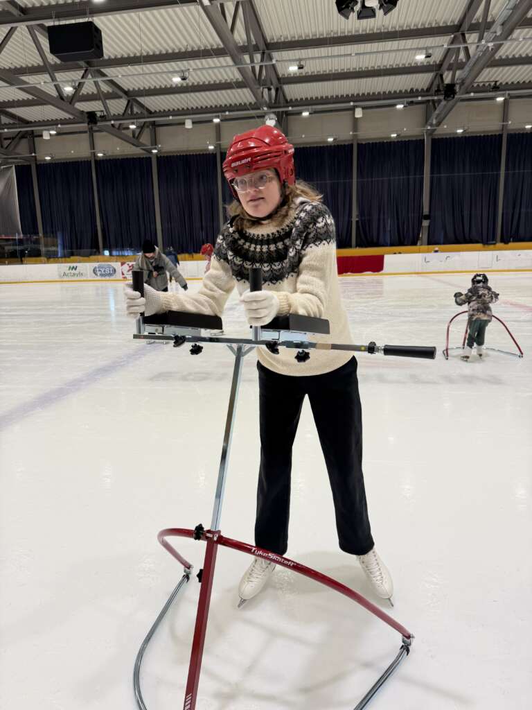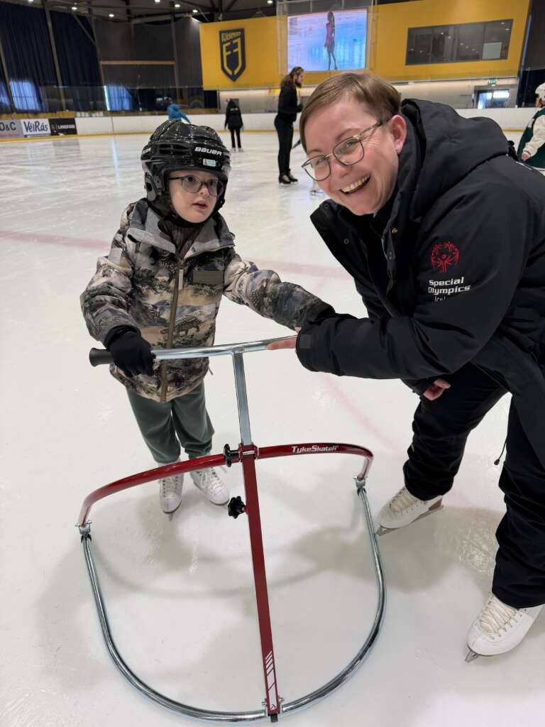 Það var skemmtilegur viðburður í Egilshöll sunnudaginn 1. mars 2026 en þá fór fram afhending sérhannaðs búnaðar, n.k. skautaþjálfa sem styðja við þá sem ekki geta skautað hjálparlaust. Það var Sigurður Hólmar Jóhannesson framkvæmdastjóri Góðvildar styrktarsjóðs sem afhenti búnaðinn en hann er jafnframt eigandi fyrirtækisins Mobility þar sem hægt er að leigja eða panta sérhannaðan búnað.